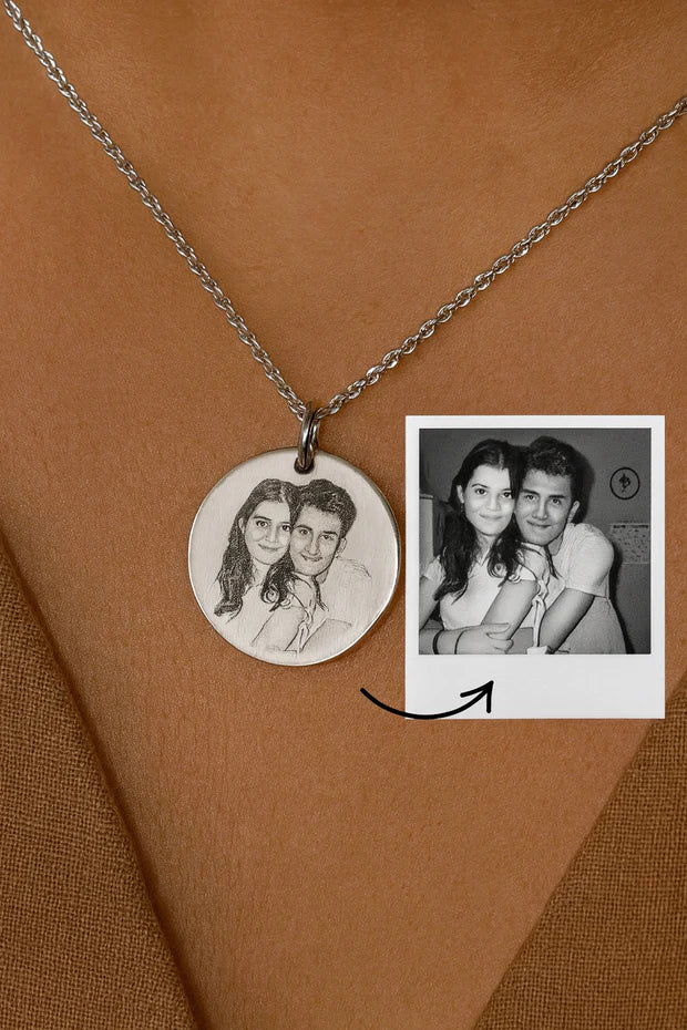 Kişiye Özel Lazer Çizim Fotoğraflı Kolye